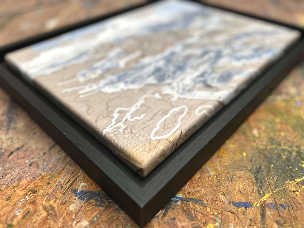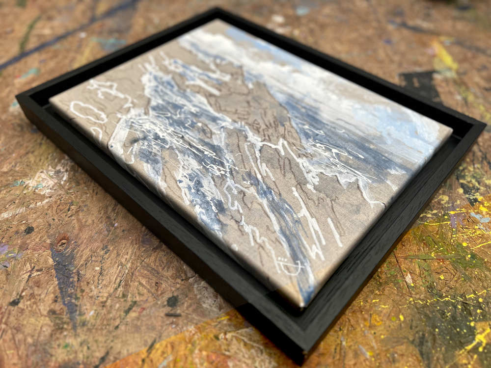 30 x 40 cm (canvas) 35.5 x 45.5 cm (framed) Acrylic and Watercolour Pencil on Linen in Black Float Frame catalogue# 7202