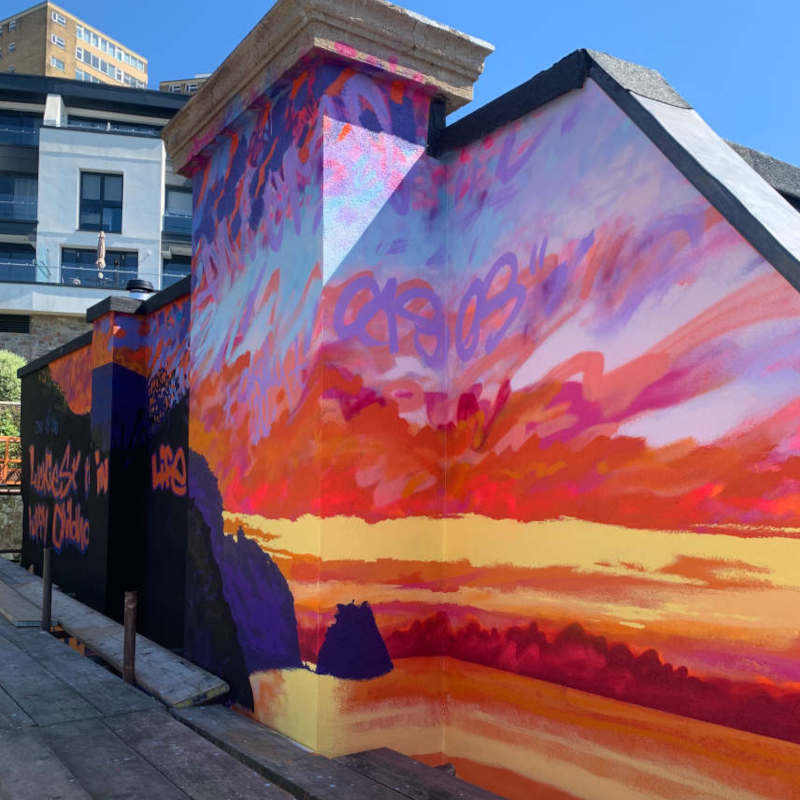Landscape-driven street art at civic scale – murals that shape how a place feels, works, and is remembered. In regeneration, housing, health and public-realm settings, murals can operate as visible social infrastructure – supporting wellbeing, identity, climate literacy and pride of place.